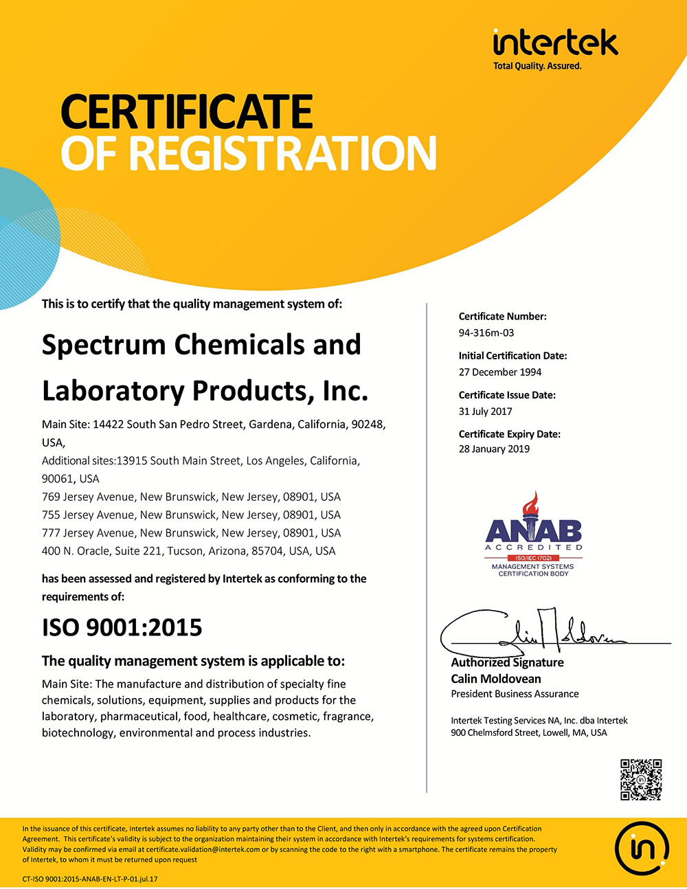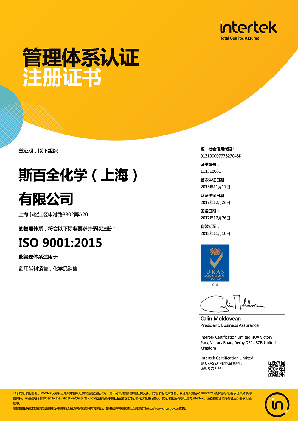 在斯百全,ISO9001认证, 以及完全符合cGMP规范是内部质量体系的基础。我们坚持对产品质量以及生产工艺作不断的评估、创新和改善以确保您对我们产品的高度信任。