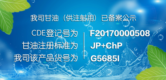 我司甘油(供注射用)已备案公示,CDE登记号为F20170000508。